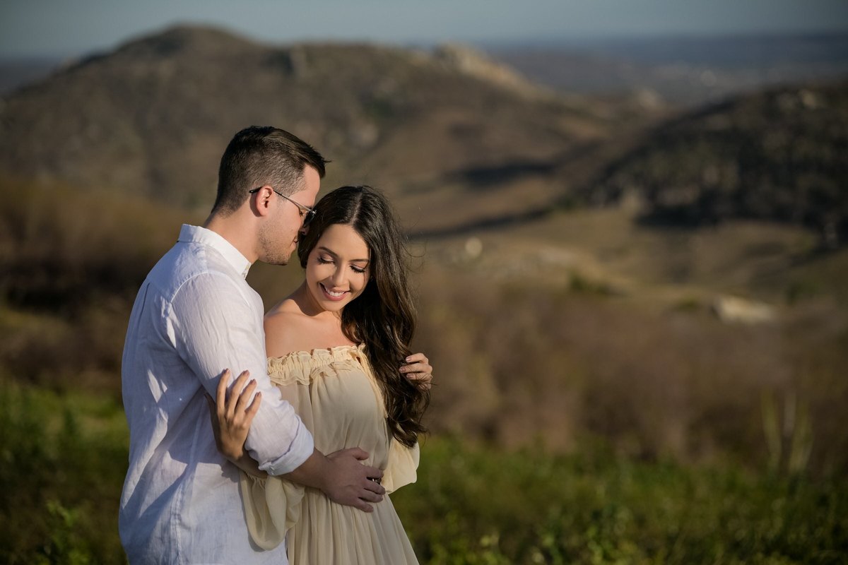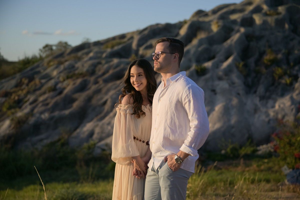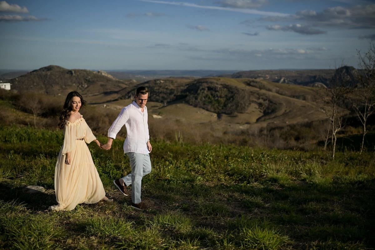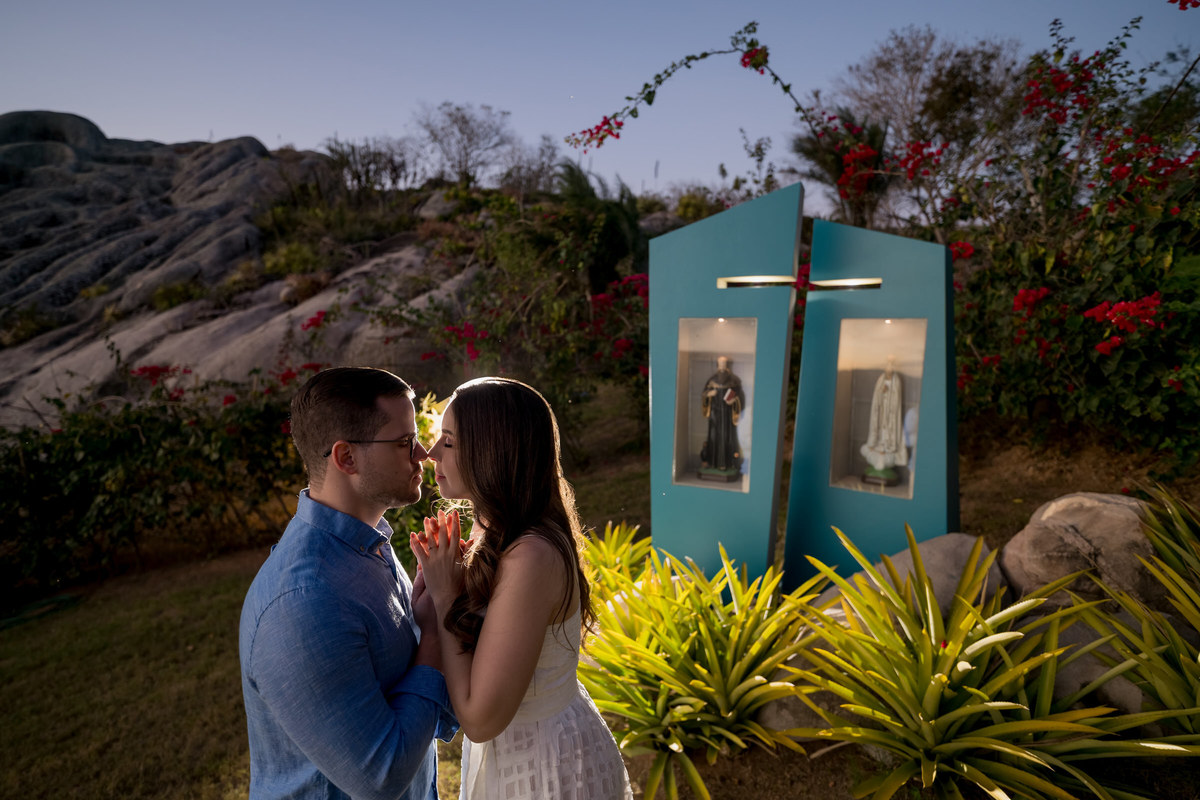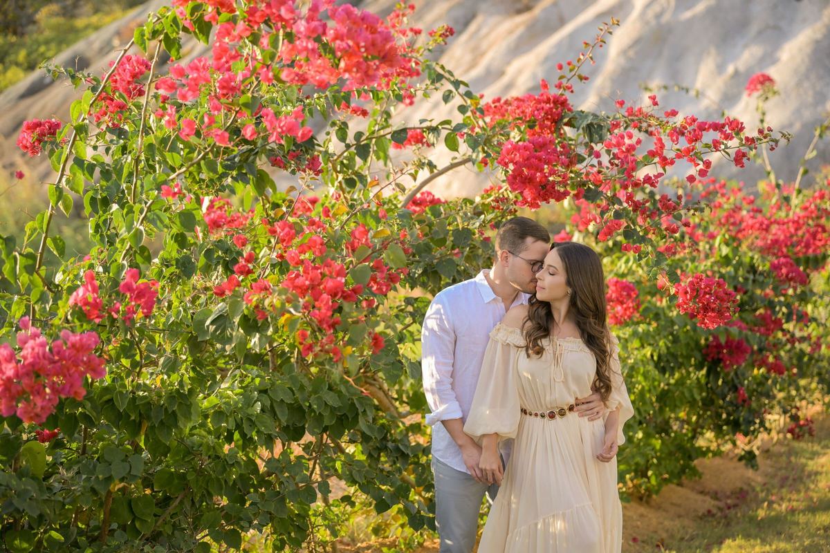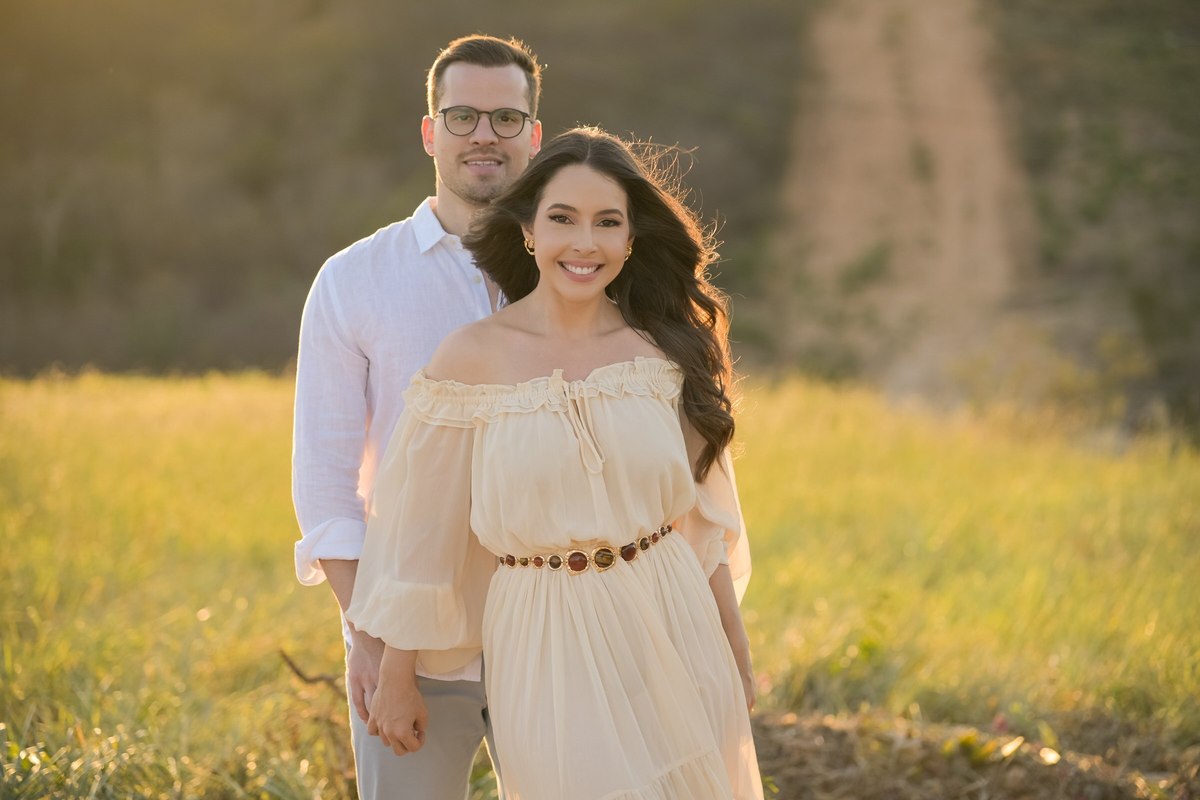 O ensaio de Marjorie e Fernando aconteceu na Serra de São Bento, em um cenário que vai muito além da beleza natural. Foi na casa dos pais de Marjorie — um refúgio construído com o amor e o olhar detalhista de seu pai, o advogado Kaleb — que a história desse casal ganhou moldura.