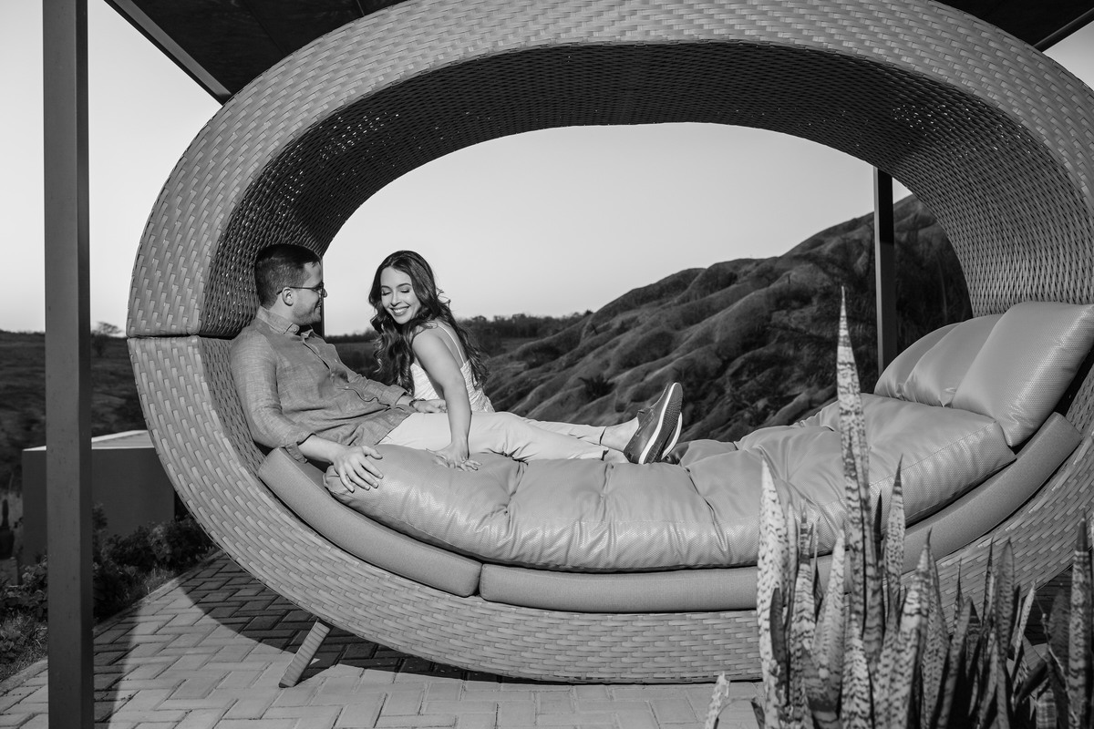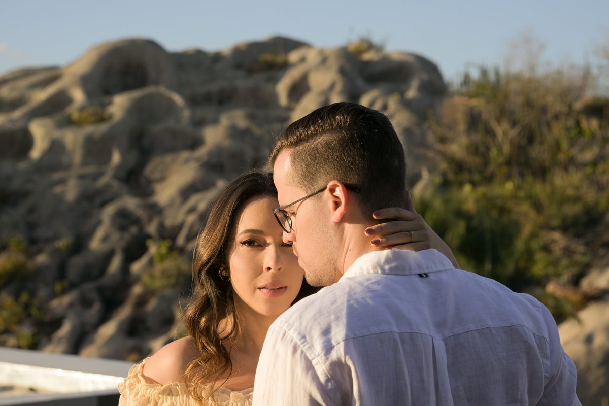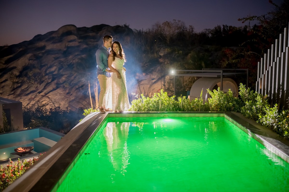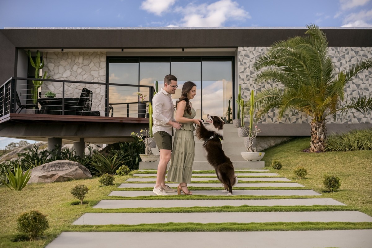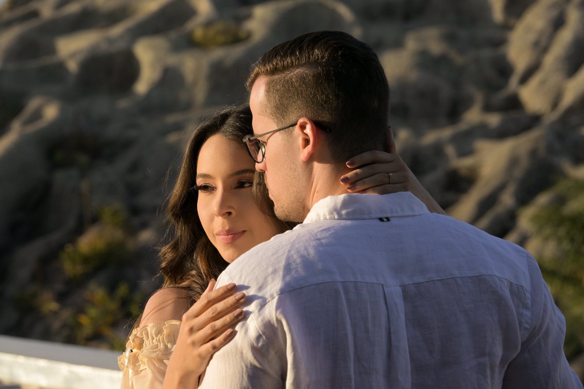 O ensaio de Marjorie e Fernando aconteceu na Serra de São Bento, em um cenário que vai muito além da beleza natural. Foi na casa dos pais de Marjorie — um refúgio construído com o amor e o olhar detalhista de seu pai, o advogado Kaleb — que a história desse casal ganhou moldura.
