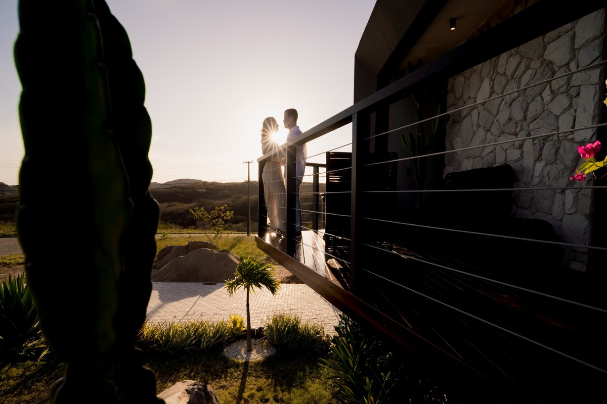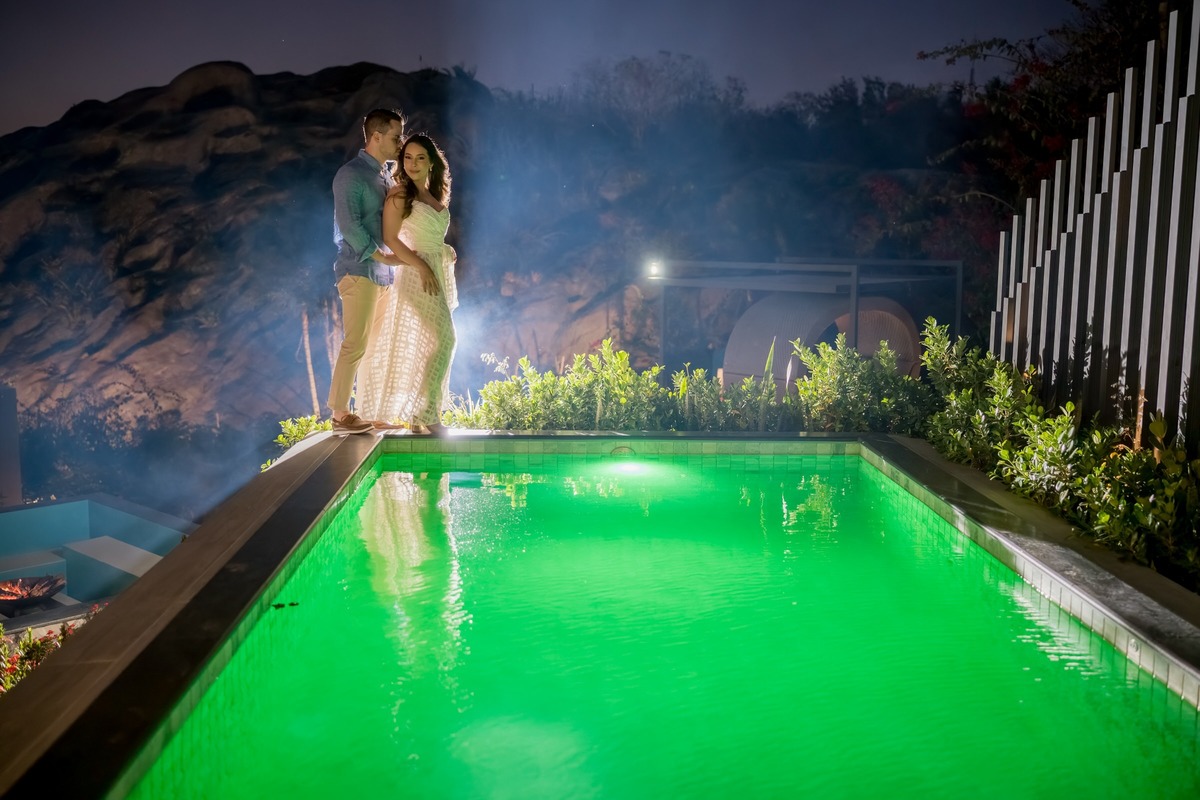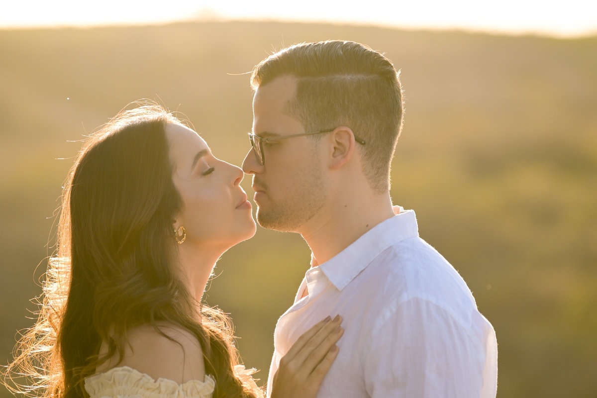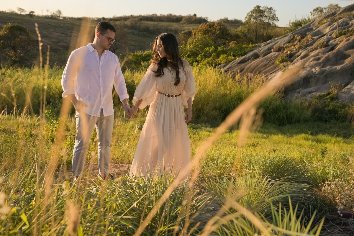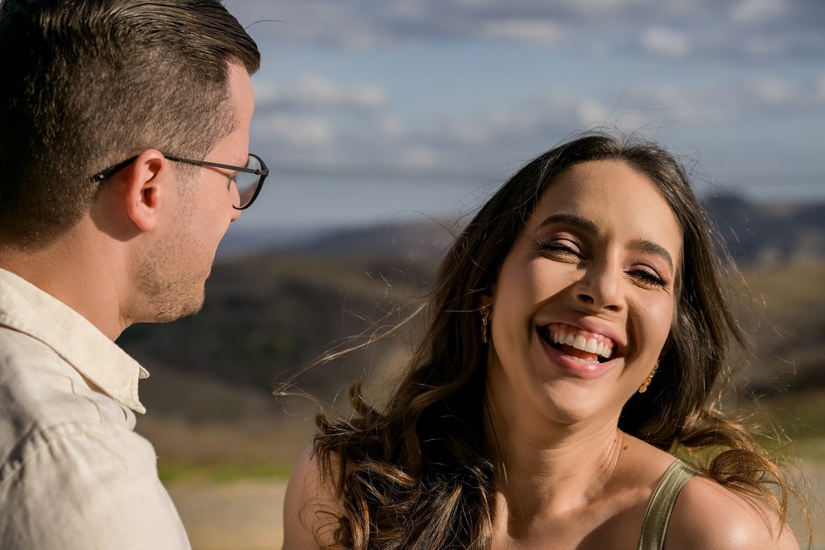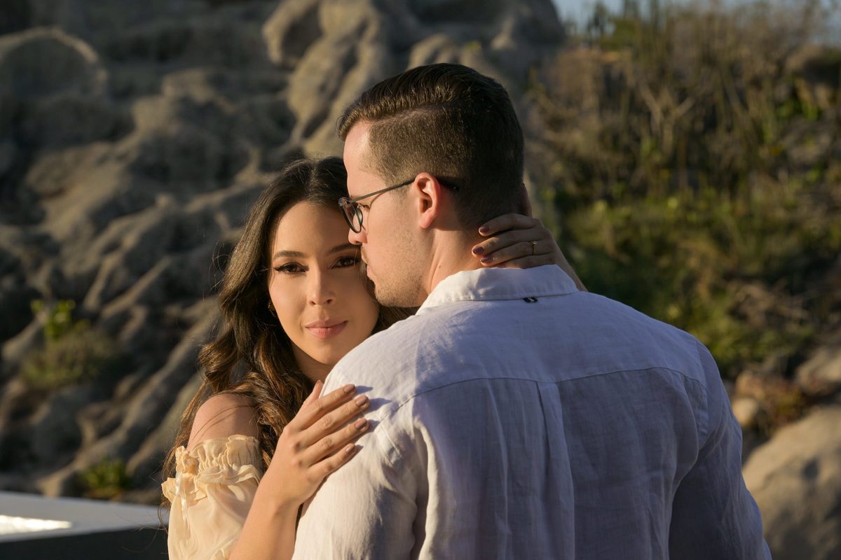 O ensaio de Marjorie e Fernando aconteceu na Serra de São Bento, em um cenário que vai muito além da beleza natural. Foi na casa dos pais de Marjorie — um refúgio construído com o amor e o olhar detalhista de seu pai, o advogado Kaleb — que a história desse casal ganhou moldura.