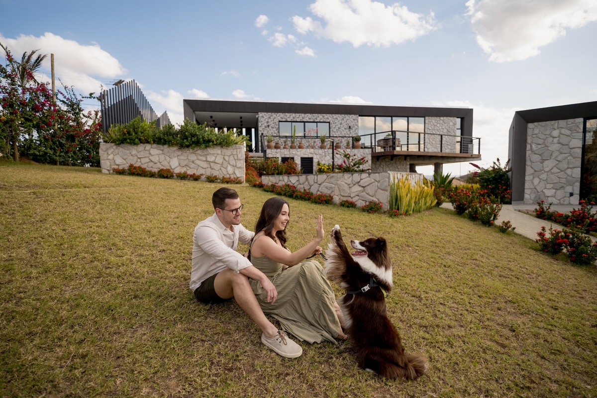 Ali, o tempo parece desacelerar. O amor se revela em gestos simples, em olhares e em sorrisos que se confundem com o vento leve da serra. Foi entre memórias e significados que o ensaio aconteceu — como se a própria casa, com toda sua alma e história, quisesse participar das fotos.