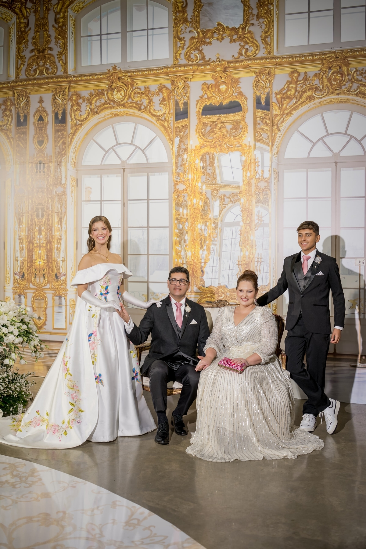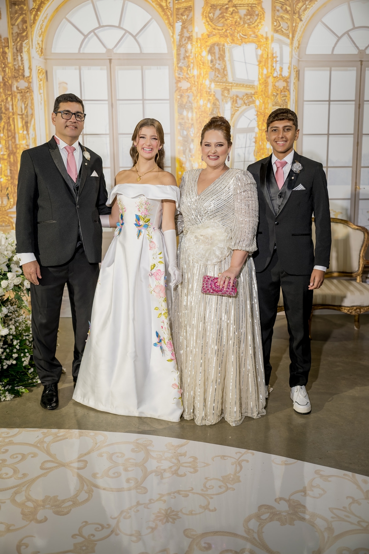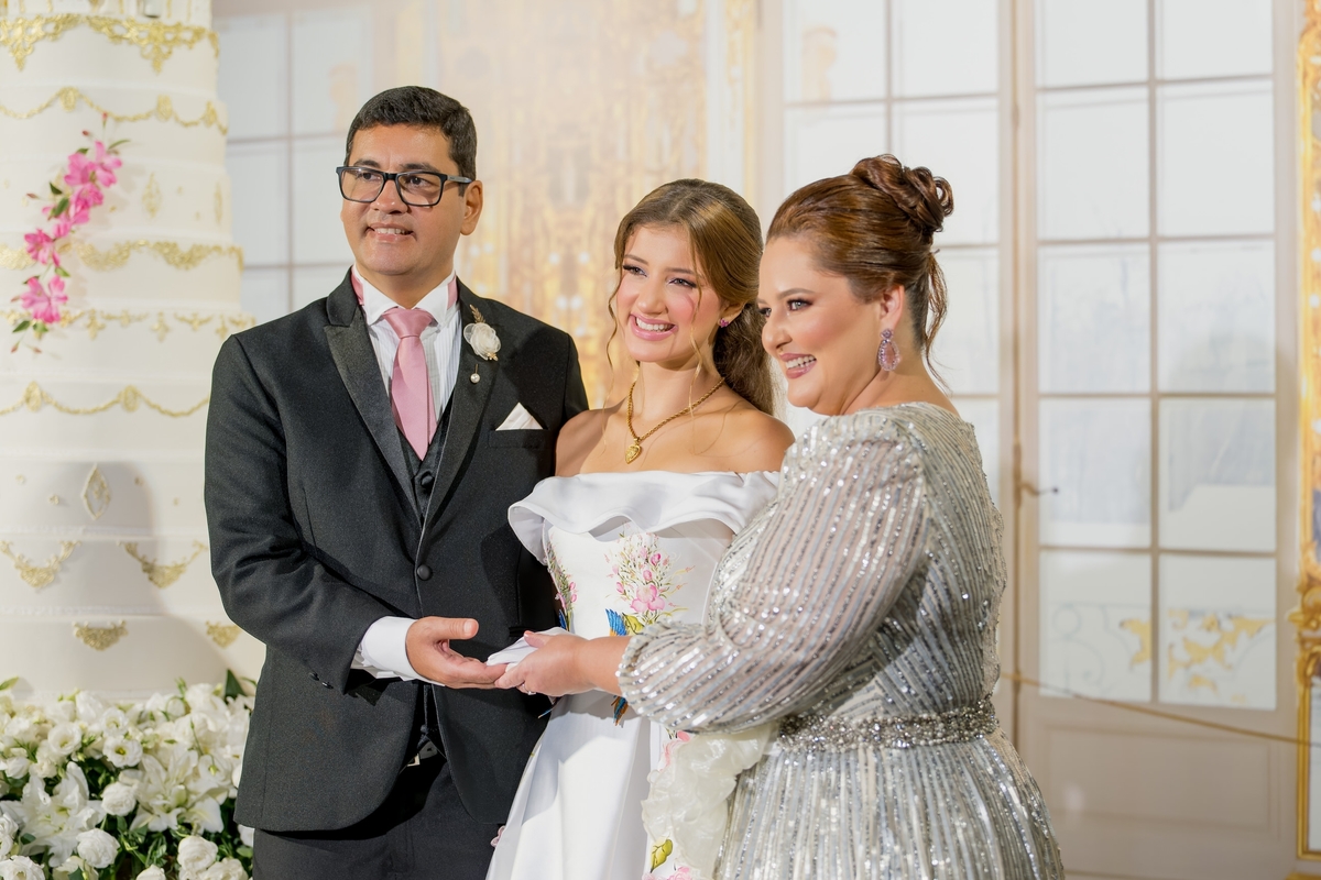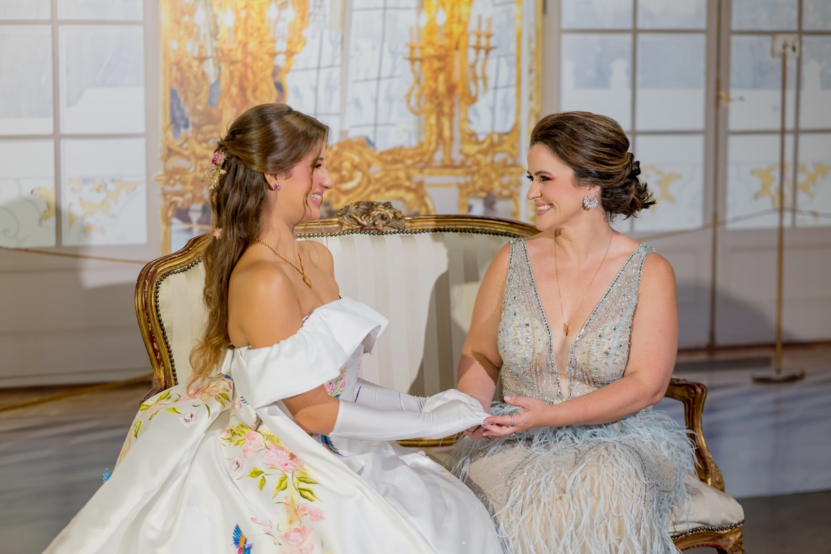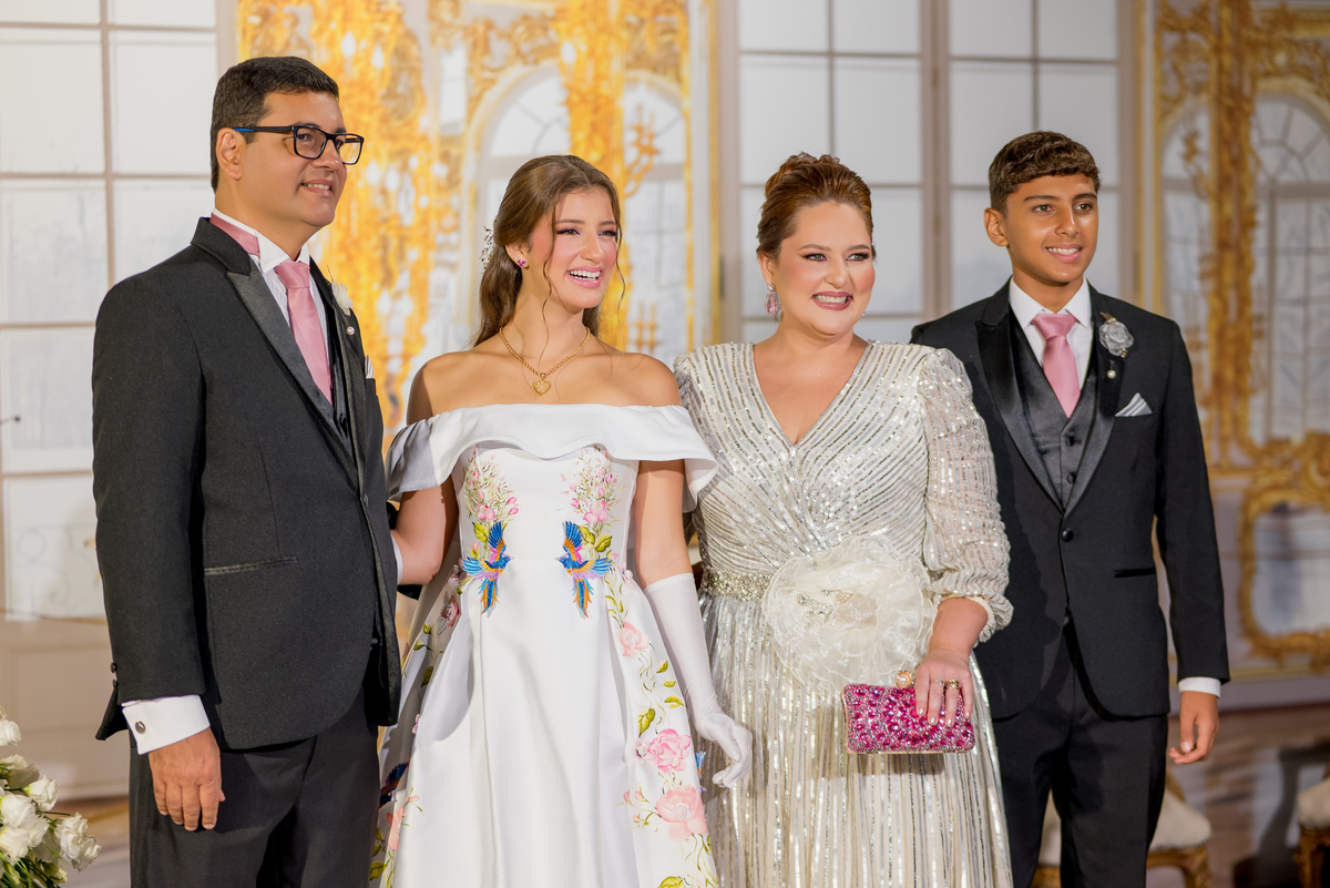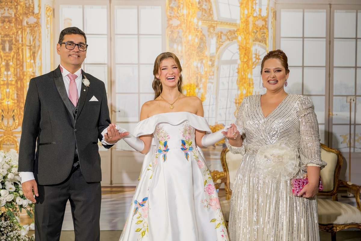 Desde o primeiro instante, a transformação de Julie começou com o talento de @nilbarbosa, que realçou sua beleza de maneira impecável. Sua mãe, @audaleite, e sua tia, @analeonormedeiros, também foram preparadas por @_matheusrodrigues e @thamaragmakeup, deixando-as deslumbrantes para esse momento tão especial. Cada detalhe do visual de Julie foi pensado com carinho, desde os acessórios do primeiro penteado, criados por @ymburana.artefloral, até o brilho do segundo penteado, diretamente da @waltdisneyworld (by Lamour). E, claro, suas joias @csjoiaspersonalizadas_ reluziam sob as luzes.