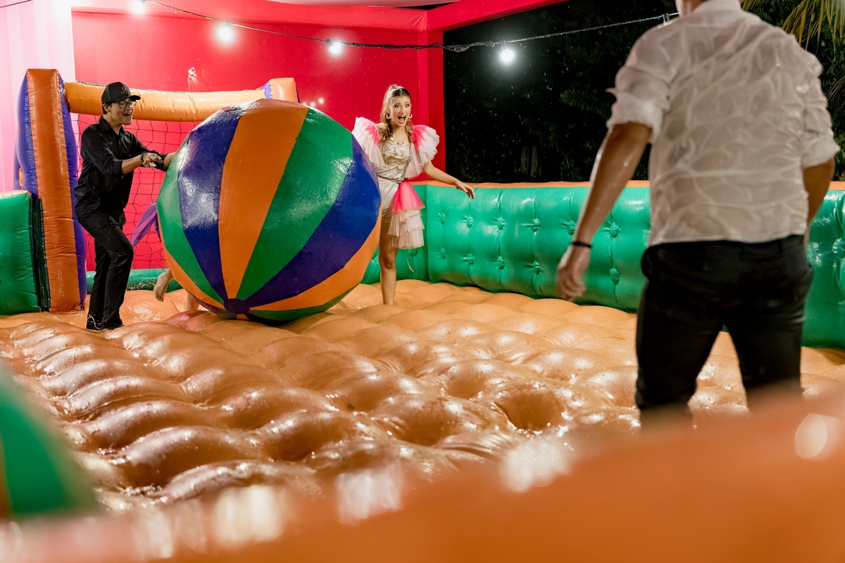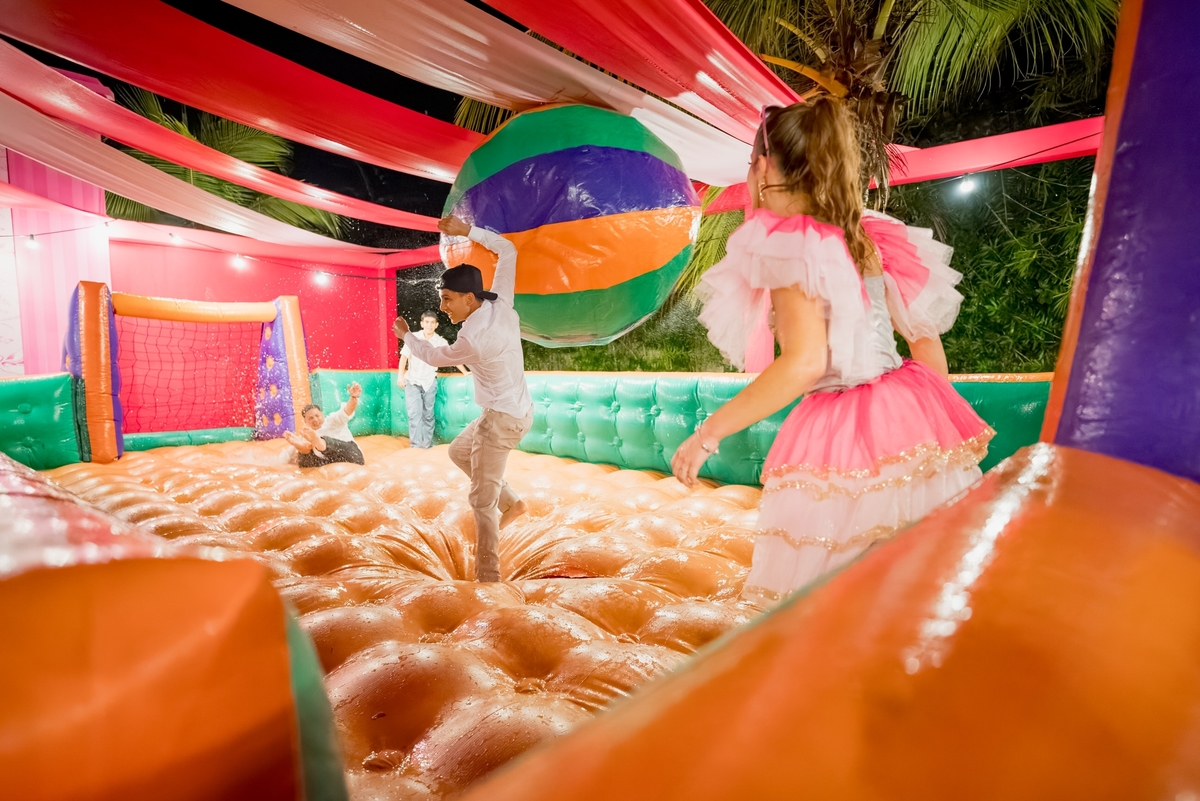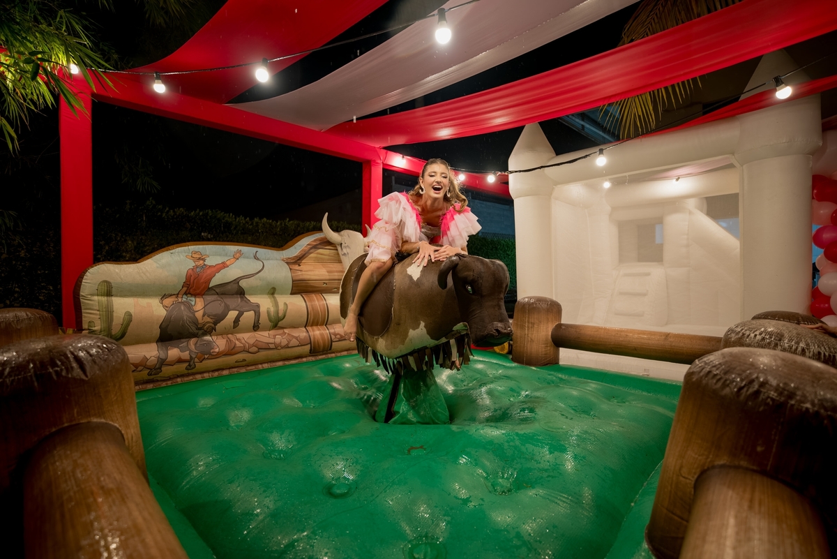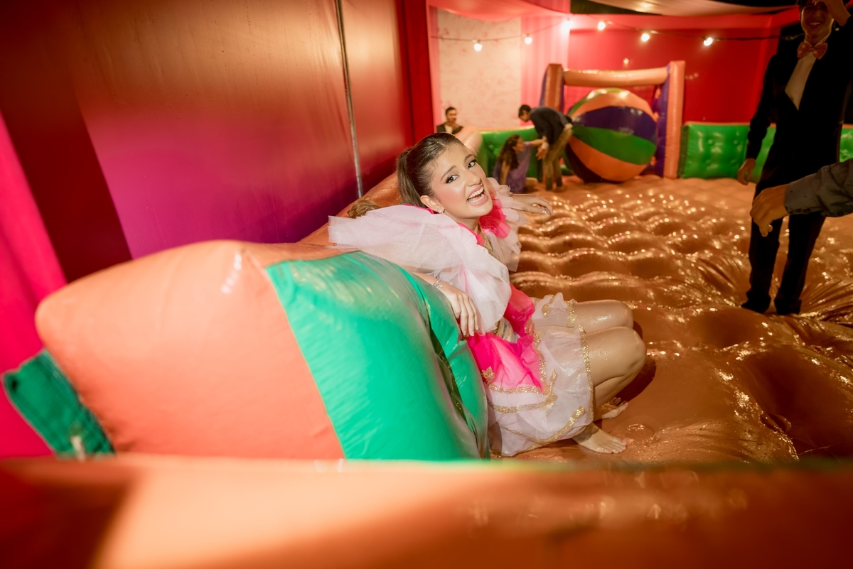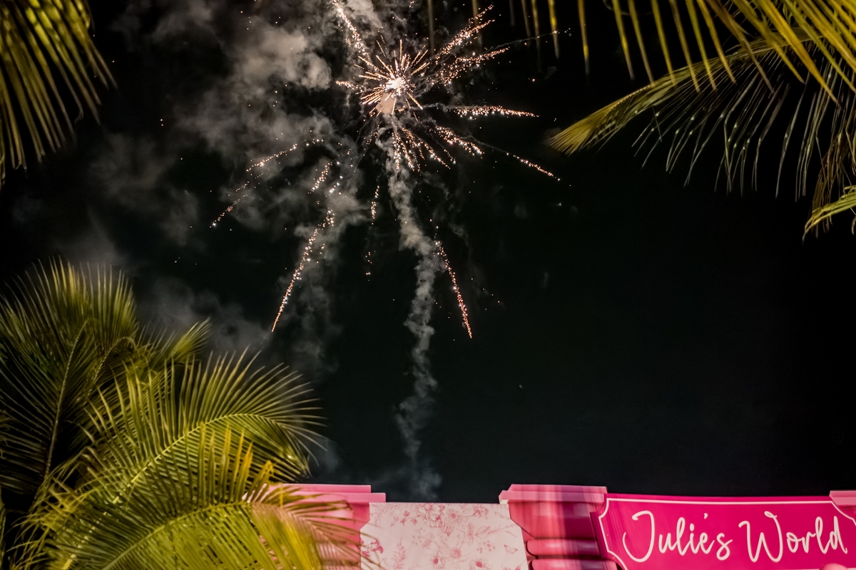 O ponto alto da noite foi o momento dos fogos de artifício, cortesia da @revela_brasil, que iluminaram o céu e marcaram o início de uma nova fase na vida de Julie. Como se não bastasse toda essa magia, um parque de diversões foi montado para os convidados, trazendo brinquedos incríveis da @turmadadiversao, incluindo Bubble House, Castelo Americano, Futebol com Bolão, Guerra de Cotonetes e Touro Mecânico. Além disso, jogos eletrônicos da @ex7gamingeventos, como fliperamas e máquinas de urso, fizeram a alegria dos convidados.